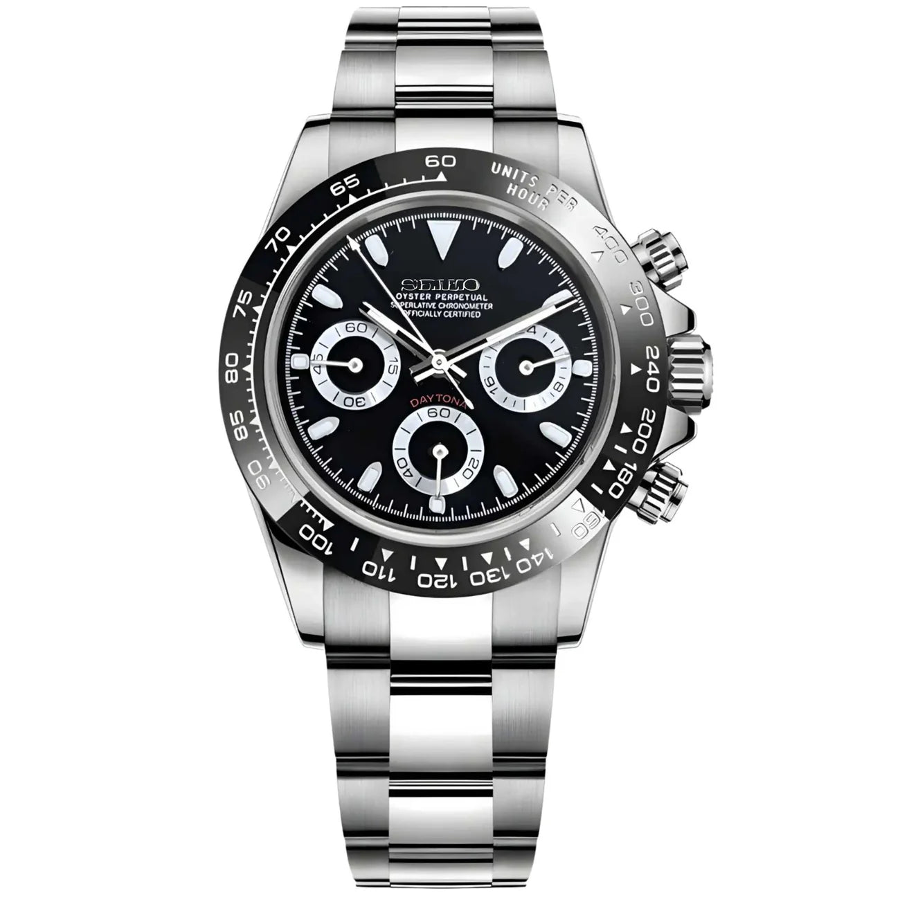 Seiko Mod Daytona Acier - Cadran Noir Chronographe